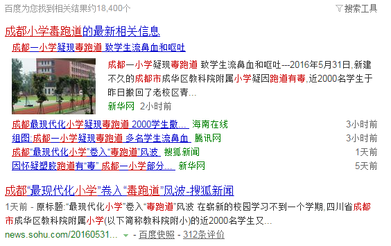 5月31日,新建不久的成都市成華區(qū)教科院附屬小學(xué)疑因跑道有毒,近2000名學(xué)生于昨日搬回了老校區(qū)青龍小學(xué),目前新學(xué)校內(nèi)除了保安等人員外,操場(chǎng)、教室未見學(xué)生上課。