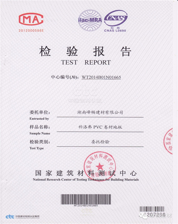 6、防火阻燃:質量合格的高分子工業(yè)地板防火指標可達B1級,B1級為除天然石材外較高的防火級別,也就是說防火性能非常出色,僅次于石材。